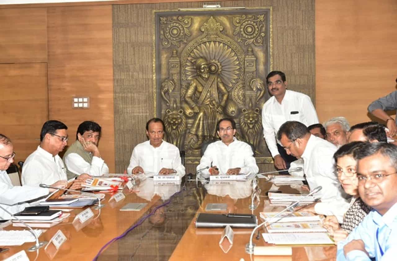 उपमुख्यमंत्री अजित पवार यांच्या खालोखाल काँग्रेस प्रदेशाध्यक्ष आणि महसूल मंत्री बाळासाहेब थोरात यांचा फोटो आहे.