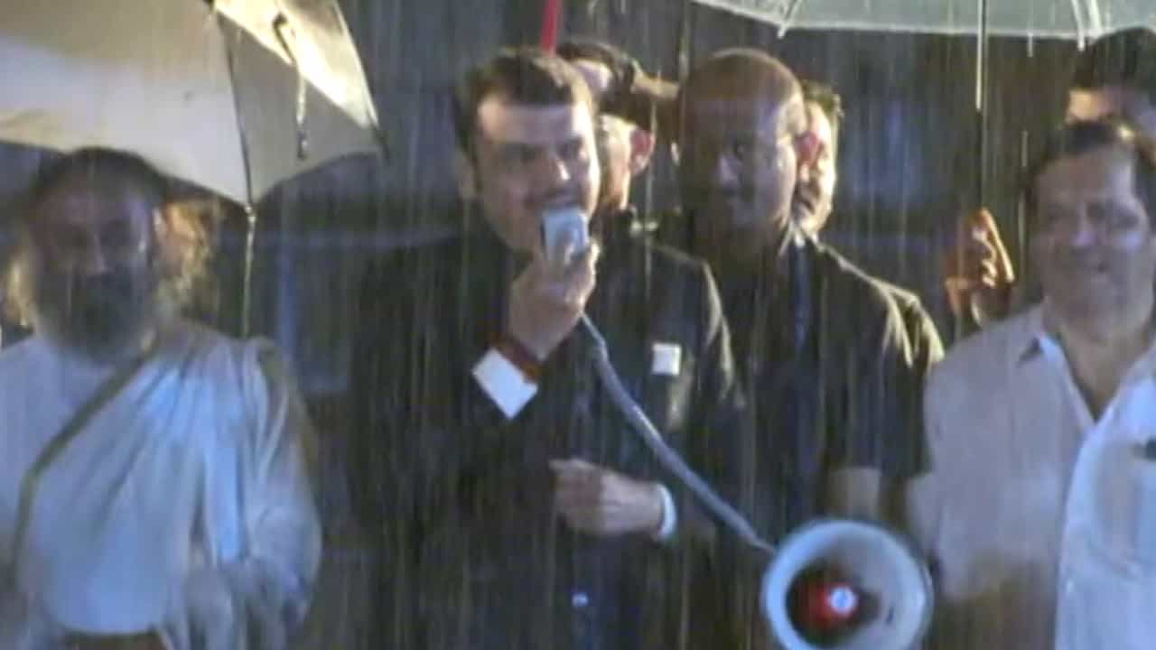 देवेंद्र फडणवीसही भिजले, भर पावसात भाषण; मुंबई हल्ल्यातील शहिदांना दिली श्रद्धांजली