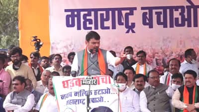 मुंबई: आम्ही नवाब मलिकांचा (nawab malik) राजीनामा मागतो. शरद पवारसाहेब म्हणतात देणार नाही. उद्धव ठाकरे म्हणतात देणार नाही. उद्धवजी, तुमचं आमचं नसेल जमत तर सोडून द्या, तुम्ही सरकार चालवताय. तुम्हाला सरकार लखलाभ असो. पण एक दिवस बाळासाहेबांना उत्तर द्यावं लागेल. मुंबईचे चिथडे चिथडे उडवणारा मंत्रिमंडळात होता तेव्हा तुम्ही काय केलं? असं बाळासाहेब विचारतील तेव्हा तुम्ही काय उत्तर द्याल? आम्ही सांगू नाही बाळसााहेब (balasaheb thackeray) आम्ही संघर्ष केला. पण आपलेच सुपुत्र मुख्यमंत्री होते. सत्तेसाठी आंधळे झाले होते. ते त्यांचा राजीनामा घेऊ शकले नाही. राजीनामा मागितला तर सरकार जाईल अशी भीती त्यांना वाटत होती, असं आम्ही बाळासाहेबांना सांगू, असा घणाघातील हल्ला विरोधी पक्षनेते देवेंद्र फडणवीस (devendra fadnavis) यांनी केला. मलिक यांचा राजीनामा घेण्यासाठी भाजपने आज विराट मोर्चाचं आयोजन केलं होतं. आझाद मैदानात मोर्चेकरी जमले होते, यावेळी फडणवीस यांनी हा घणाघाती हल्ला चढवला.