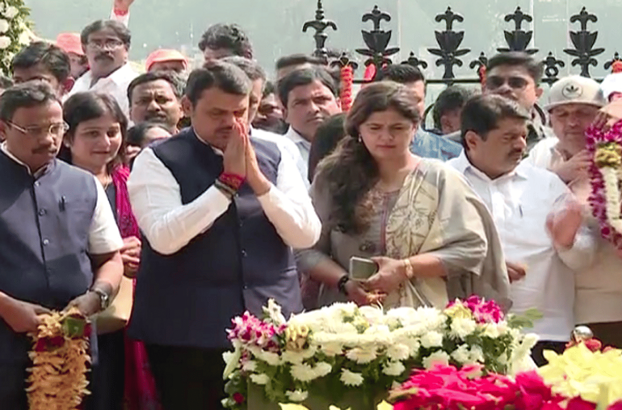 देवेंद्र फडणवीस बाळासाहेब ठाकरेंच्या स्मृतीस्थळावर