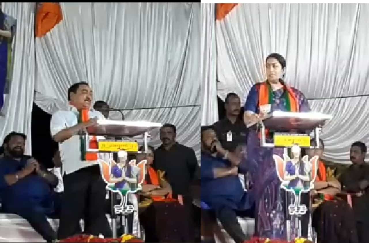 एकनाथ खडसेंनी आपल्या भाषणाला हिंदीतून सुरुवात केली. त्यावेळी स्मृती इराणी यांनी त्यांना मराठीतून बोलण्याची विनंती केली.