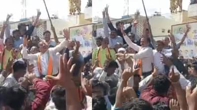 खेमचंद कुमावत, जळगाव : मंत्रिमंडळ विस्तारानंतर भाजप नेते आणि मंत्री गिरीश महाजन (Girish Mahajan) आज पहिल्यांदाच आपल्या मतदारसंघात पोहोचले. त्यावेळी कार्यकर्त्यांकडून महाजनांचं जंगी स्वागत (Warm Welcome) करण्यात आलं. हजारोंची गर्दी, ढोलताशाचा गजर, फटाक्यांची आतषबाजी, जोरदार घोषणाबाजी अशा वातावरणात महाजनांची उघड्या जीपमधून मिरवणूकही काढण्यात आली. त्यावेळी कार्यकर्त्यांनी महाजनांना डान्स (Girish Mahajan Dance) करण्याचा आग्रह केला. सुरुवातीला नाही म्हणणाऱ्या महाजनांनी नंतर मात्र चांगलाच ठेका धरला. यापूर्वीही अनेकदा गिरीश महाजन यांना ढोल वाजवताना, लेझीम खेळताना आणि नाचताना पाहिलं आहे. यावेळी मात्र मंत्रिपदाचा आनंद महाजनांच्या चेहऱ्यावर स्पष्ट दिसत होता.