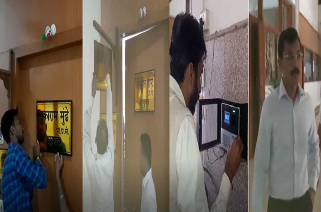 साडेनऊच्या ठोक्याला तुकाराम मुंढे कार्यालयात, हजेरीचं पंचिंग मशीन बिघडलं, केबिनबाहेर जुन्या आयुक्तांची पाटी बदलताना धावपळ