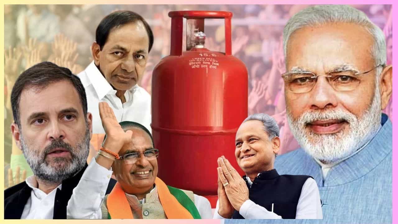 काँग्रेसने या निवडणुकीत छत्तीसगडमध्ये सिलिंडरवर 500 रुपयांची सबसिडी देण्याची घोषणा करताच भाजपनेही प्रत्येक गरीब कुटुंबाला 500 रुपयांना सिलिंडर देण्याची घोषणा केली. मध्यप्रदेशमध्ये मुख्यमंत्री शिवराज सिंह चौहान यांच्या भाजप सरकारने 450 रुपयांना सिलिंडर देण्याची घोषणा केली आहे. तर, काँग्रेसने 500 रुपयांना सिलिंडर देण्याची घोषणा केलीय. राजस्थानमध्ये काँग्रेसने गरीब महिलांना 400 रुपयांना गॅस सिलिंडर देण्याची घोषणा केली. तेलंगणा आणि मिझोराममध्येही काँग्रेस, भाजपसह तिसऱ्या आघाडीने कमी किमतीत सिलिंडर देण्याचे आश्वासन दिले आहे.