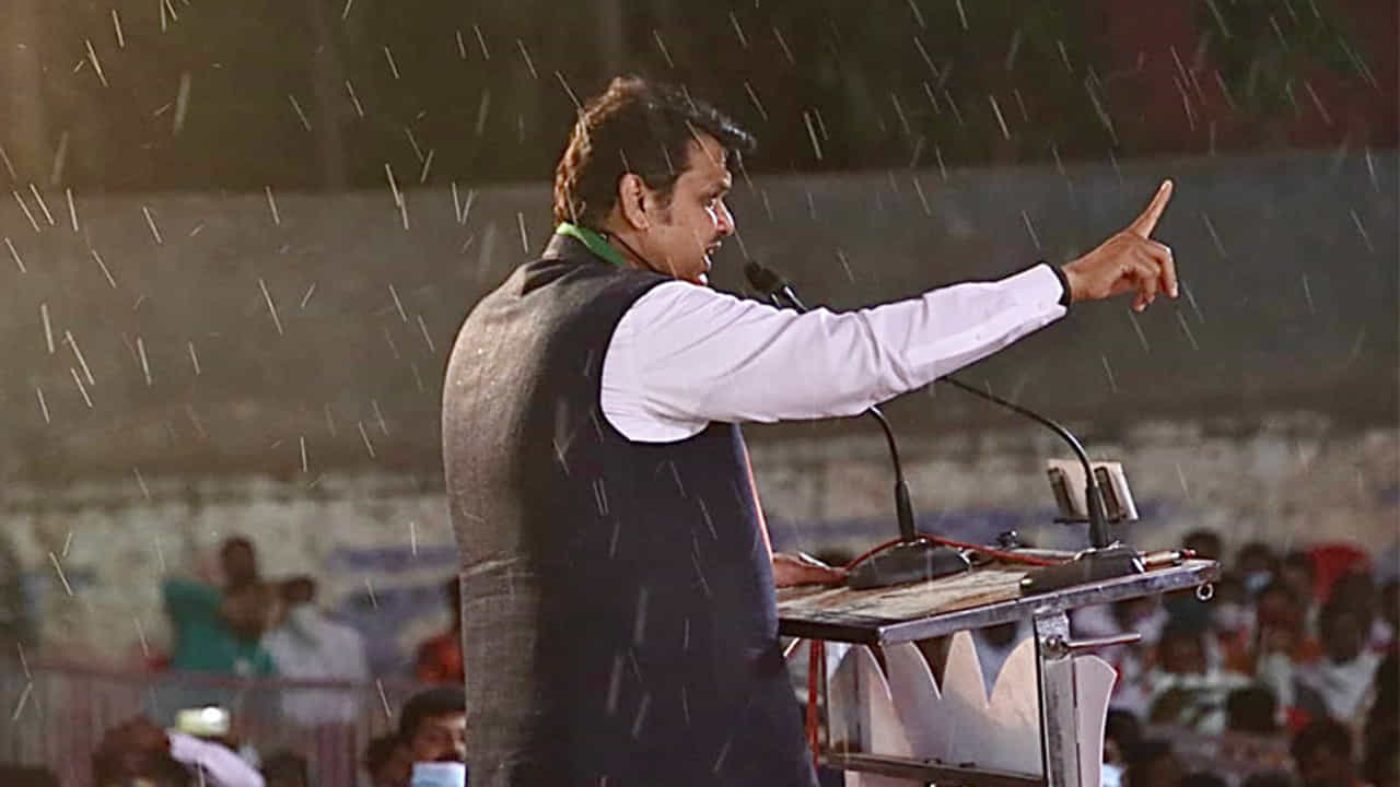 (In Pandharpur, Devendra Fadnavis addresses rally in rain)