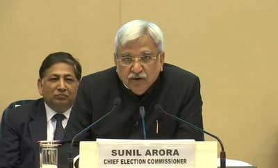 Loksabha Election 2019 Live Updates : लोकसभा निवडणुकीचं बिगुल वाजलं आहे. देशभरात आजपासून आचारसंहिता लागू झाली आहे. केंद्रीय निवडणूक आयोगाने पत्रकार परिषद घेऊन याबाबतची माहिती दिली. मुख्य निवडणूक आयुक्त सुनिल अरोरा यांनी निवडणुकीच्या तारखा जाहीर केल्या. यंदाच्या निवडणुकीचं वैशिष्ट्य म्हणजे ईव्हीएमवर उमेदवाराचा फोटो दिसणार आहे.