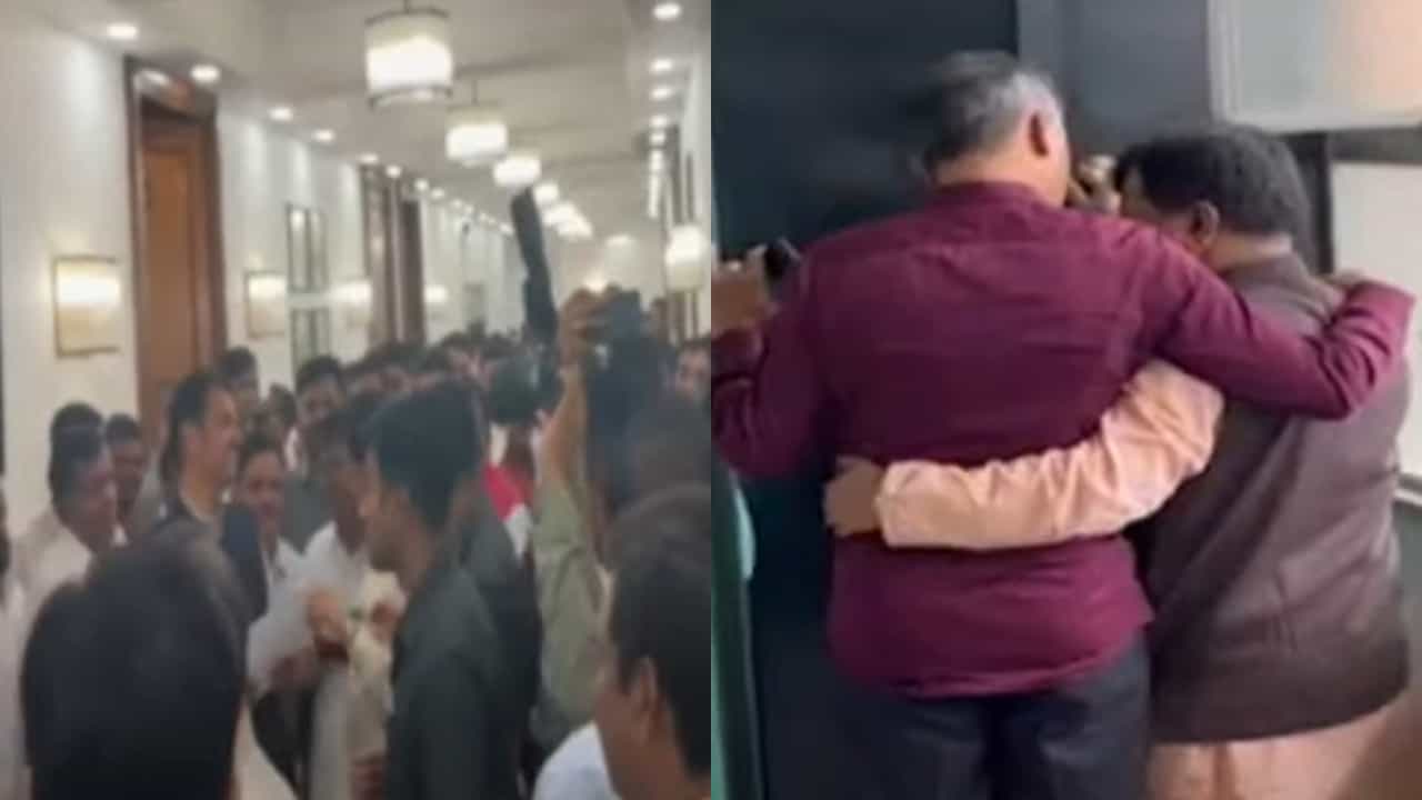 मुंबईतील विधानभवनात उपमुख्यमंत्री देवेंद्र फडणवीस आणि शिवसेना नेते आदित्य ठाकरे एकमेकांना भेटल्याचा व्हिडीओ समोर आला आहे. तर दुसरीकडे शिवसेना उद्धव बाळासाहेब गटाचे नेते मिलिंद नार्वेकर आणि भाजप नेते प्रवीण दरेकर यांचा गळाभेट घेतानाचा एक व्हिडीओही समोर आला आहे.