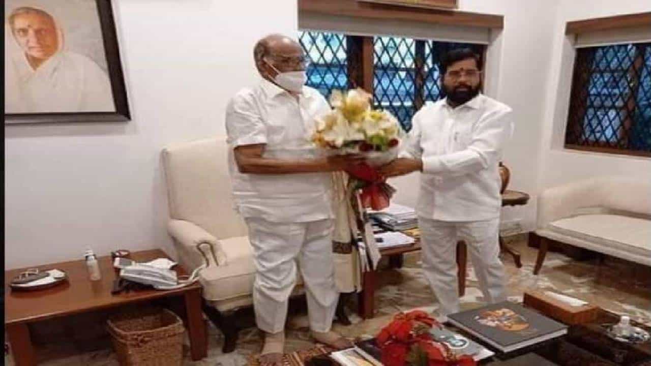 शरद पवार यांच्या भेटीबाबत पसरलेल्या अफवांना फेटाळण्यासाठी मुख्यमंत्री एकनाथ शिंदे यांनी एक ट्विट केलं. त्यात ते म्हणाले, ‘राष्ट्रवादी काँग्रेसचे अध्यक्ष शरद पवार यांना मी भेटल्याची बातमी काही प्रसारमाध्यमांनी दिलेली आहे. ही बातमी संपूर्णपणे चुकीची असून त्यात अजिबात कोणतेही तथ्य नाही. या बातमीसोबत व्हायरल झालेला फोटो हा मी त्यांना त्यांच्या वाढदिवसानिमित्त शुभेच्छा द्यायला गेलो होतो तेव्हाचा आहे. आमच्यात अद्याप अशी कोणतीही भेट झालेली नसून याबाबत आलेल्या कोणत्याही बातम्यांवर कोणीही विश्वास ठेवू नये…