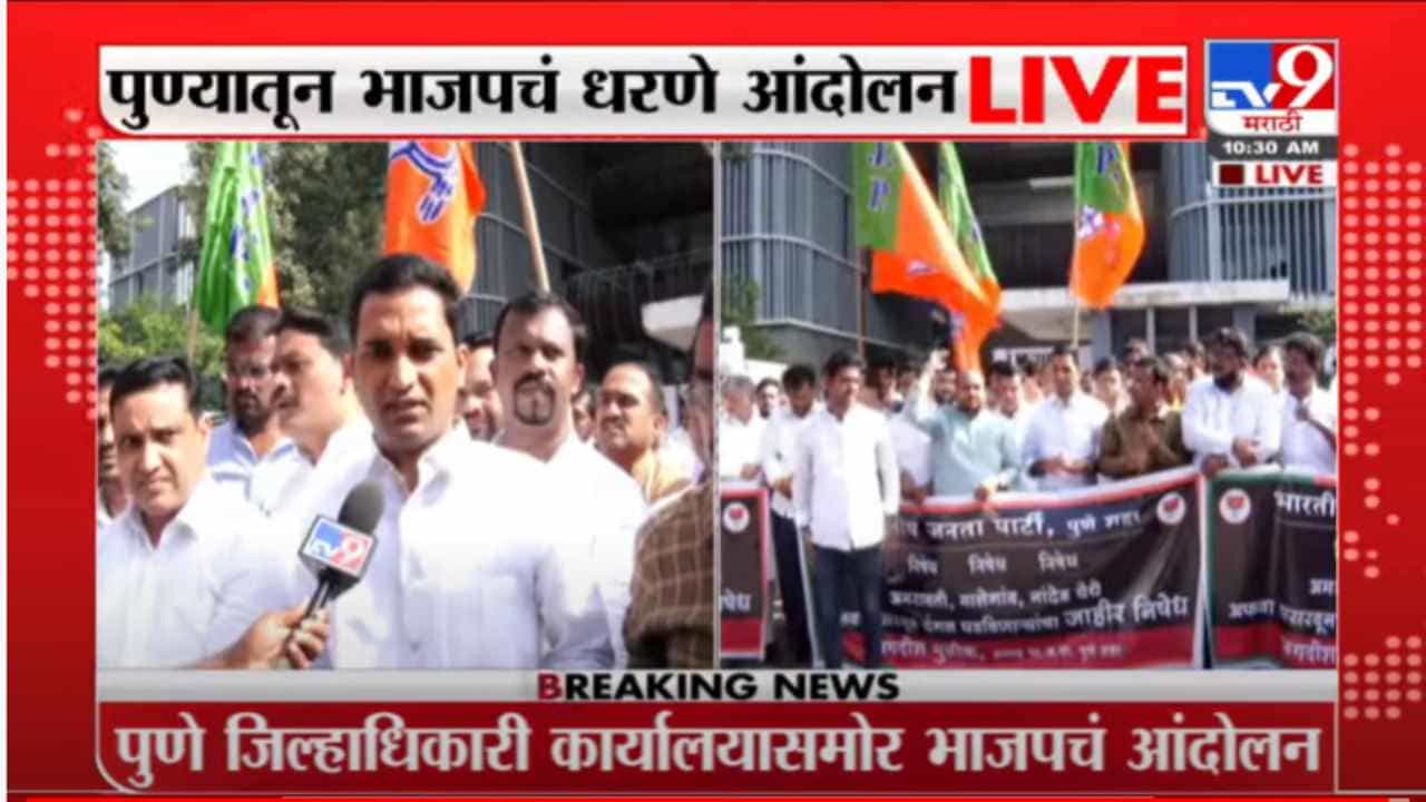 महाविकास आघडीनं दंगेखोरांना पाठीशी घातलं- जगदीश मुळीक ; भाजपने धरणे आंदोलन करत व्यक्त केला निषेध