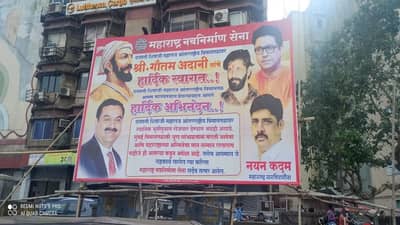 ‘छत्रपती शिवाजी महाराज आंतरराष्ट्रीय विमानतळावर स्थानिक भूमिपुत्रास रोजगार देण्यास आग्रही असावे. मुंबई विमातळाची धुरा सांभाळताना मराठी भाषेचा आणि महाराष्ट्राच्या अस्मितेचा मान सन्मान राखलाच पाहीजे ही आपल्याकडून अपेक्षा आहे. तसंच आपणास जे सहकार्य लागेल त्यासाठी महाराष्ट्र नवनिर्माण सेना सदैव तत्पर असेल’, असं बॅनर मनसेकडून लावण्यात आलं आहे. या बॅनरवर छत्रपती शिवाजी महाराज, मनसे अध्यक्ष राज ठाकरे, अमित ठाकरे, गौतम अदानी आणि मनसेचे महाराष्ट्र सरचिटणीस नयन कदम यांचा फोटो छापण्यात आला आहे.