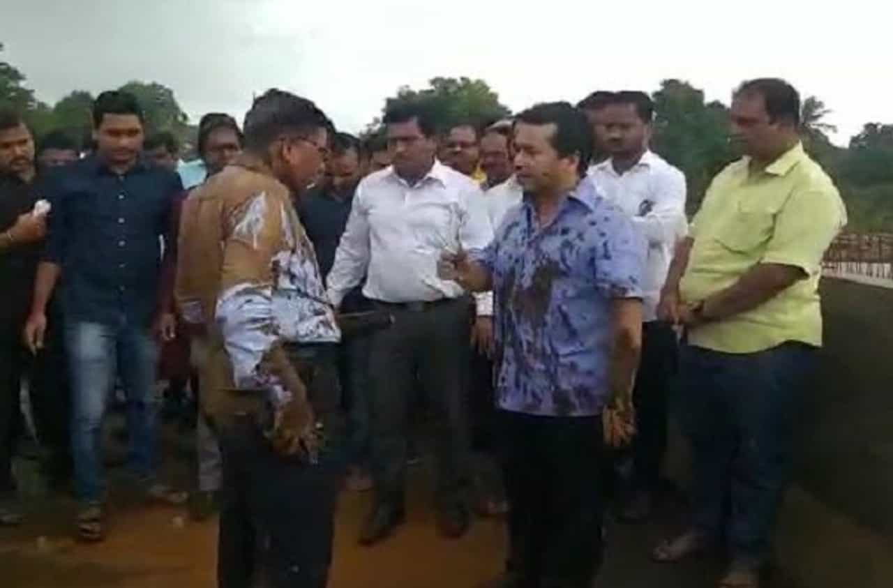मुंबई गोवा महामार्गावरून आक्रमक झालेल्या नितेश राणेंनी उपअभियंते प्रकाश शेडेकर यांना पुलाला बांधण्याच्या प्रयत्न करुन, थेट हायवेवरील चिखलाने आंघोळ घातली. नितेश राणेंनी शेडेकर यांना शिव्यांची लाखोली वाहिली.