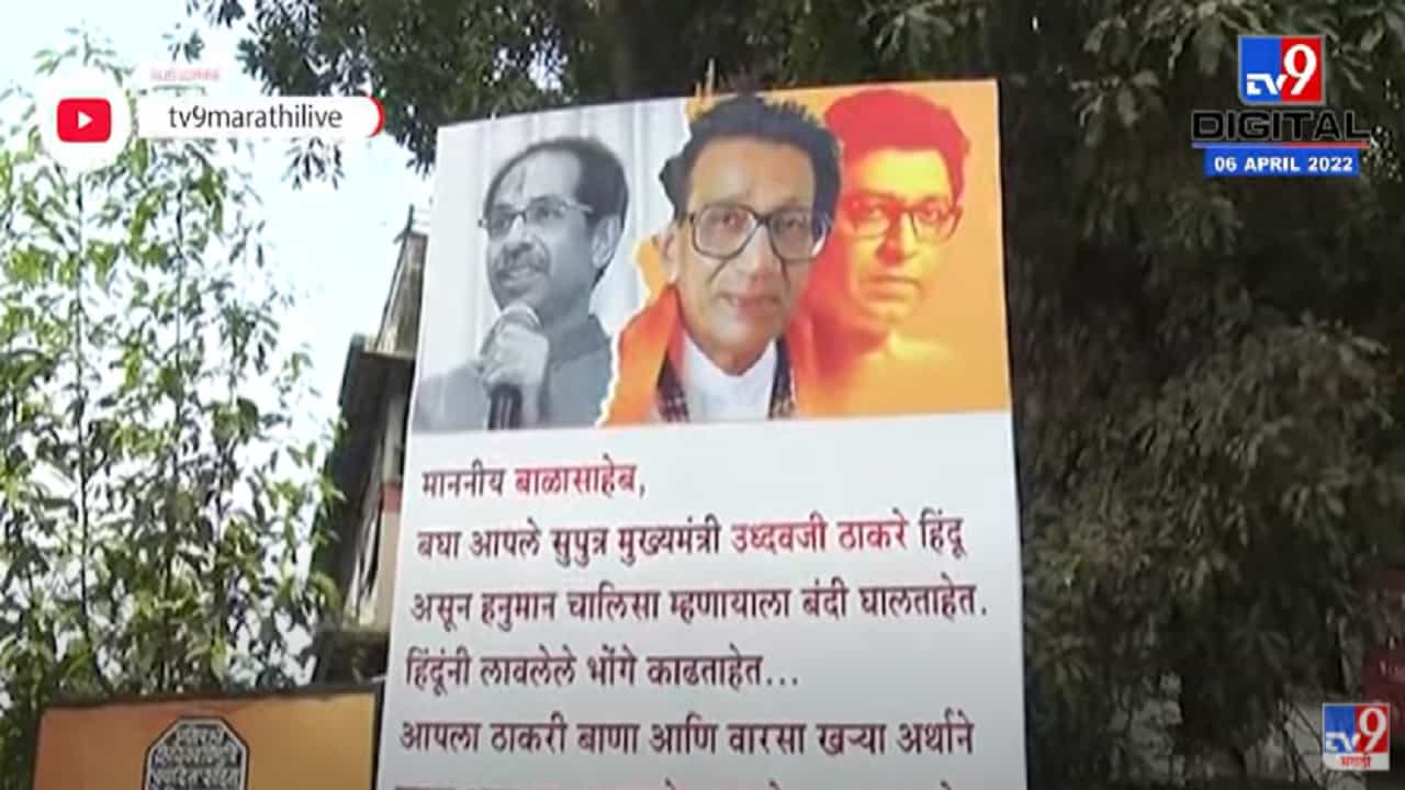 बॅनरमध्ये लिहिलंय की, ‘माननीय बाळासाहेब, बघा आपले सुपुत्र मुख्यमंत्री उद्धव ठाकरे हिंदू असून हनुमान चालीसा म्हणायला बंदी घालतायेत हिंदूंनी लावलेले भोंगे काढताहेत. आपला ठाकरी बाणा आणि वारसा खऱ्या अर्थाने फक्त आता मा. राजसाहेब ठाकरे चालवत आहेत