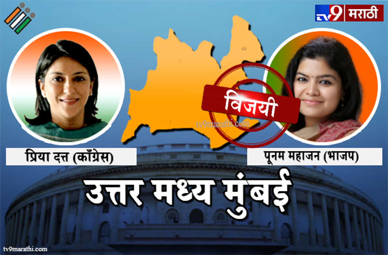उत्तर मध्य मुंबई लोकसभा मतदारसंघ: भाजपच्या पूनम महाजन यांनी पुन्हा एकदा उत्तर मध्य मुंबई लोकसभा मतदारसंघातून विजय मिळवला. उत्तर मध्य मुंबई लोकसभा मतदारसंघात चौथ्या टप्प्यात 29 एप्रिलला मतदान झालं होतं. इथे यंदा 53 टक्के मतदानाची नोंद झाली. या मतदारसंघात भाजपकडून पूनम महाजन विरुद्ध काँग्रेसच्या प्रिया दत्त यांच्यात लढत झाली. प्रिया दत्त यांनी सुरुवातीला निवडणूक लढण्यास नकार दिला होता. मात्र पक्षश्रेष्ठींनी त्यांना निवडणूक लढवण्यास सांगितल्याने त्या मैदानात उतरल्या होत्या.