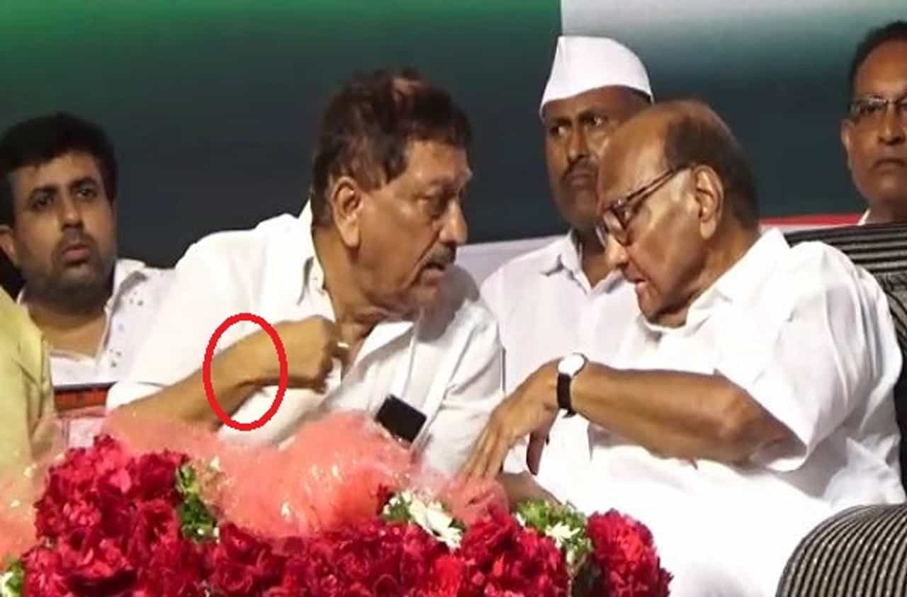 शरद पवारांसमोर उमेदवाराच्या एका हातात घड्याळ, दुसऱ्या हातात शिवबंधन