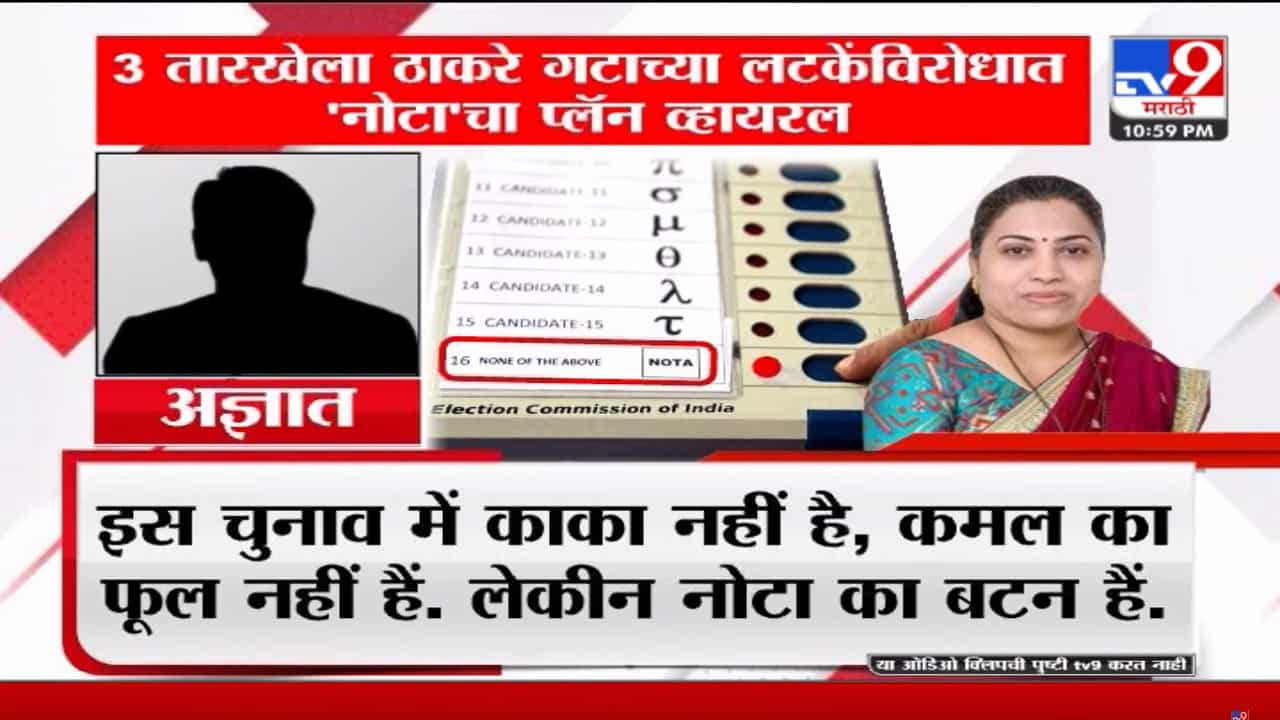 या वादाशी निगडित एक ऑडिओ क्लीप व्हायरल झाली आहे. ठाकरे गटा विरोधात ‘नोटा’च्या बटणाचा प्लॅन बनवला जात असल्याचा दावा केला जात आहे.