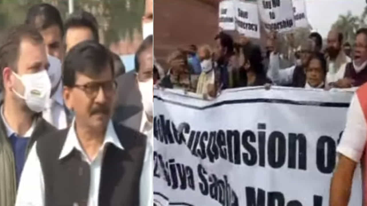 लखीमपूर हिंसेप्रकरणी गृहराज्यमंत्र्यांच्या राजीनाम्याशिवाय स्वस्थ बसणार नाही, राऊतांचा इशारा; विरोधकांचा संसदेबाहेर लाँगमार्च