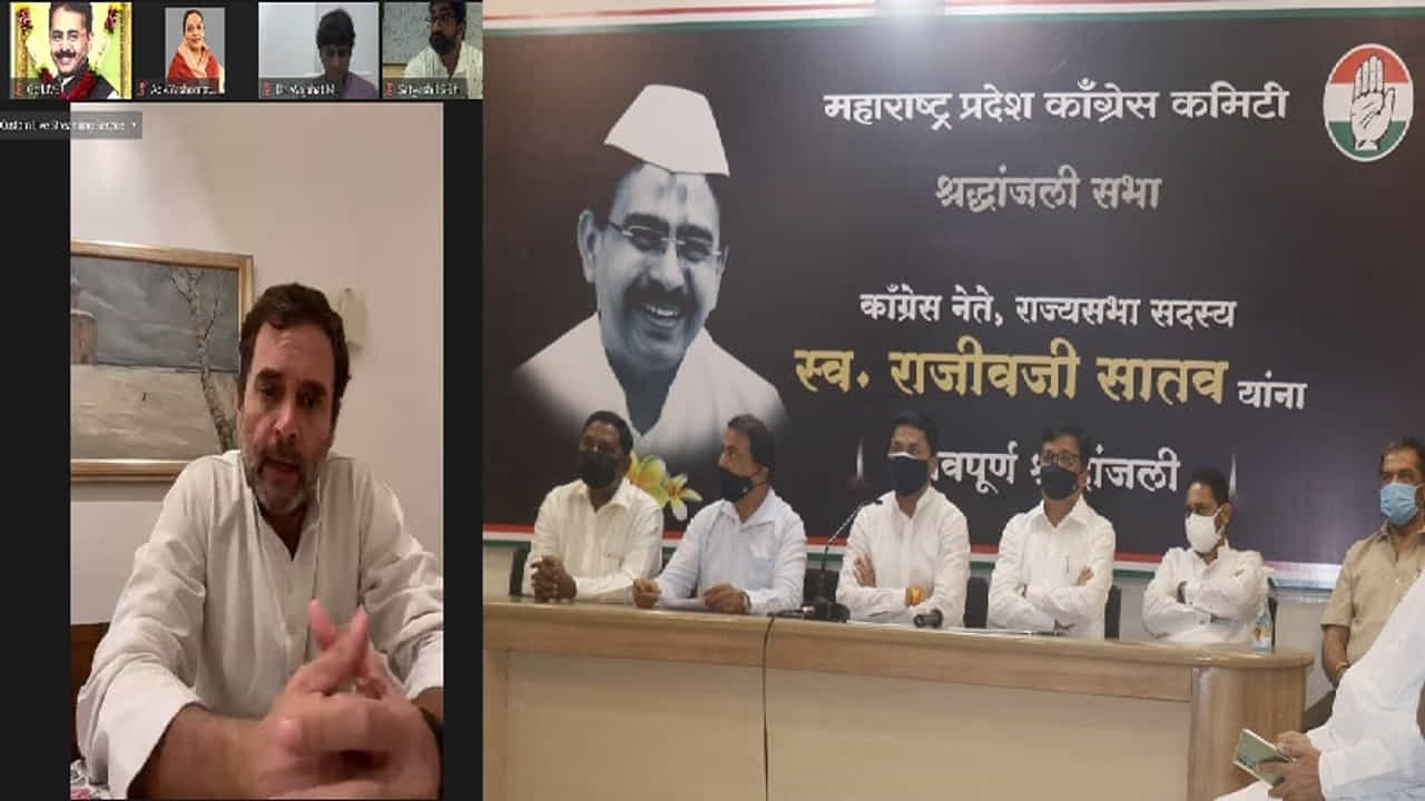 मुंबई : महाराष्ट्रातील काँग्रेसचा मोठा चेहरा दिवंगत राजीव सातव यांच्या निधनानंतर आज ऑनलाईन श्रद्धांजली संभेचं आयोजन करण्यात आलं. यावेळी काँग्रेस खासदार राहुल गांधी, काँग्रेस नेत्या प्रियंका गांधी यांच्यासह देशातील आणि राज्यातील काँग्रेसचे बडे नेते सहभागी झाले. राजीव यांच्या निधनाने मी एक चांगला सहकारी व मित्र गमावला आहे. राजीव आपल्यातून निघून गेले असले तरी त्यांच्या परिवाराच्या पाठीशी काँग्रेस पक्ष सदैव भक्कपणे उभे राहील, अशा शोकभावना राहुल गांधी यांनी व्यक्त केल्या आहेत. (Organizing an online tribute meeting to pay homage to Rajiv Satav)