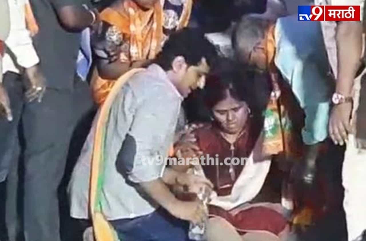 बीड : भाजप नेत्या आणि राज्याच्या ग्रामविकास मंत्री पंकजा मुंडे (Pankaja Munde faints) या भाषणादरम्यान स्टेजवर कोसळल्या. गेल्या काही दिवसांपासून विधानसभा निवडणुकांच्या प्रचारासाठी पंकजा मुंडे या अनेक ठिकाणी सभा घेत आहेत. दरम्यान या घटनेमुळे घटनास्थळी एकच धावाधाव झाली.