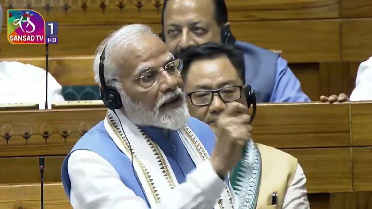 PM Narendra Modi : संसदेत काल पंतप्रधान नरेंद्र मोदी यांचं भाषण झालं. मोदी भाषण करत असताना विरोधी पक्षाचे खासदार जोरदार घोषणाबाजी करत होते. राष्ट्रपतींच्या अभिभाषणानंतर धन्यवाद प्रस्तावावर झालेल्या चर्चेला पीएम मोदी उत्तर देत होते. त्यावेळी मोदींची एक कृती चर्चेचा विषय ठरली आहे.