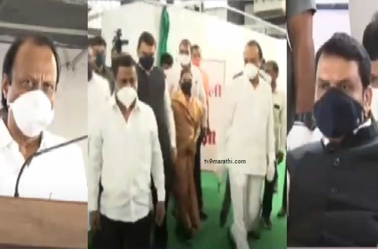 पिंपरी चिंचवड : पिंपरी-चिंचवडमध्ये उभारण्यात आलेल्या 200 ऑक्सिजन बेडयुक्त रुग्णालयाचे उपमुख्यमंत्री अजित पवार आणि विरोधीपक्ष नेते देवेंद्र फडणवीस यांच्या उपस्थितीत लोकार्पण करण्यात आले. यावेळी “फडणवीस आणि मी दोघे एकत्र येणार म्हटलं, की लगेच ब्रेकिंग न्यूज होते” अशा शब्दात अजितदादांनी टोलेबाजी केली. (Pimpri Chinchwad COVID hospital inauguration by Ajit Pawar Devendra Fadnavis)