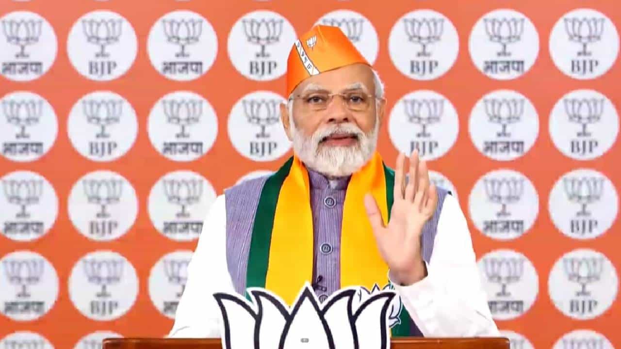 नवी दिल्ली येथील पक्षाच्या कार्यालयातून पंतप्रधान नरेंद्र मोदी यांनी देशभरातील दहा लाख पक्ष कार्यकर्त्यांशी संवाद साधला. देशभरात मोदींचं भाषण लाइव्ह दाखवण्यात आलं होतं. यावेळी मोदींनी सर्वांना हनुमान जयंतीच्या शुभेच्छा दिल्या. राक्षसांचा सामना करताना हनुमान कठोर झाले. अशाच प्रकारे भ्रष्टाचार, घराणेशाहीशी लढायचं असेल तर कठोर व्हावं लागणार आहे, असं मोदी म्हणाले. भारताचं संरक्षण करण्यासाठी भाजप कटिब्ध आहे. भारताच्या संरक्षणासाठी कठोरातील कठोर पाऊल उचलण्यात भाजप मागे पुढे पाहणार नाही. घराणेशाही मोडीत काढण्यासाठी हनुमानासारखं कठोर व्हावं लागतं. सबका साथ, सबका विकास आणि सबका विश्वास हा मंत्र घेऊनच भाजप मार्गक्रमण करत आहे. देशाच्या नावावर राजकारण करणं ही भाजपची संस्कृती नाही, असं मोदी म्हणाले.