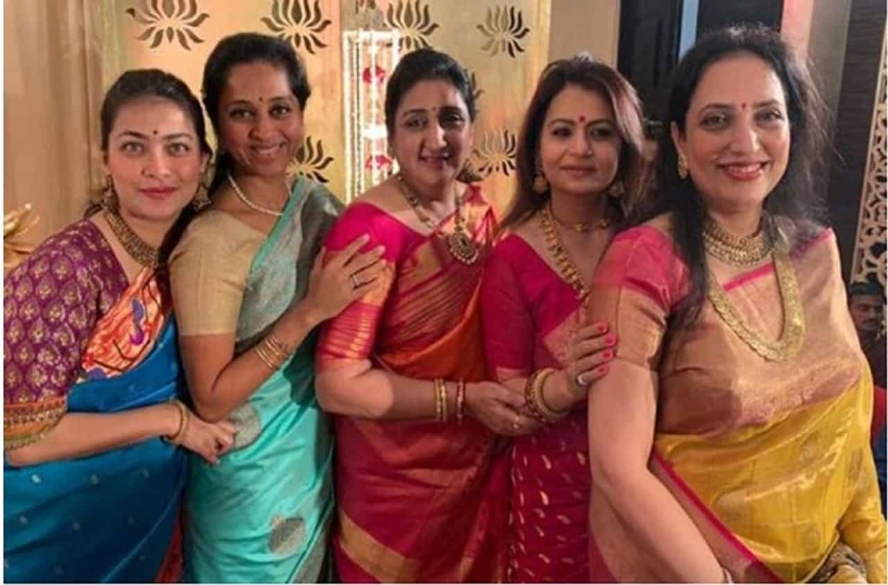 एकीकडे राजकीय शत्रुत्व पाहायला मिळत असलं, तरी अनेक राजकीय नेत्यांचे पक्षापलिकडे ऋणानुबंध पाहायला मिळतात. नेत्यांच्या कन्या, पत्नी याला अपवाद कशा ठरतील? लग्न-सण समारंभांच्या निमित्ताने एकत्र आलेल्या महिला राजकारण बाजूला ठेवून गप्पांचे फड जमवताना (Political Leader Wives Viral Photo) दिसतात.