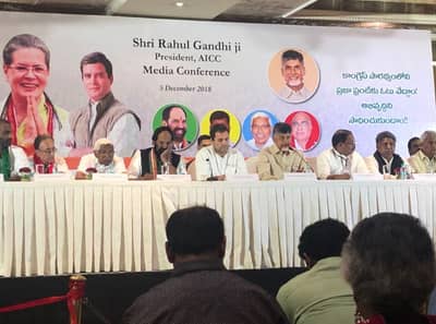 तेलंगणा निवडणूक प्रचाराच्या शेवटच्या दिवशी राहुल गांधीनी टीडीपी नेते चंद्राबाबू नायडू यांच्या सोबत पत्रकार परिषद घेतली.