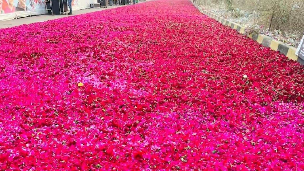 6000 किलो गुलाब पाकळ्या, 2 किलोमीटर रस्त्यावर अंथरल्या, कुणाचं झालं जंगी स्वागत?