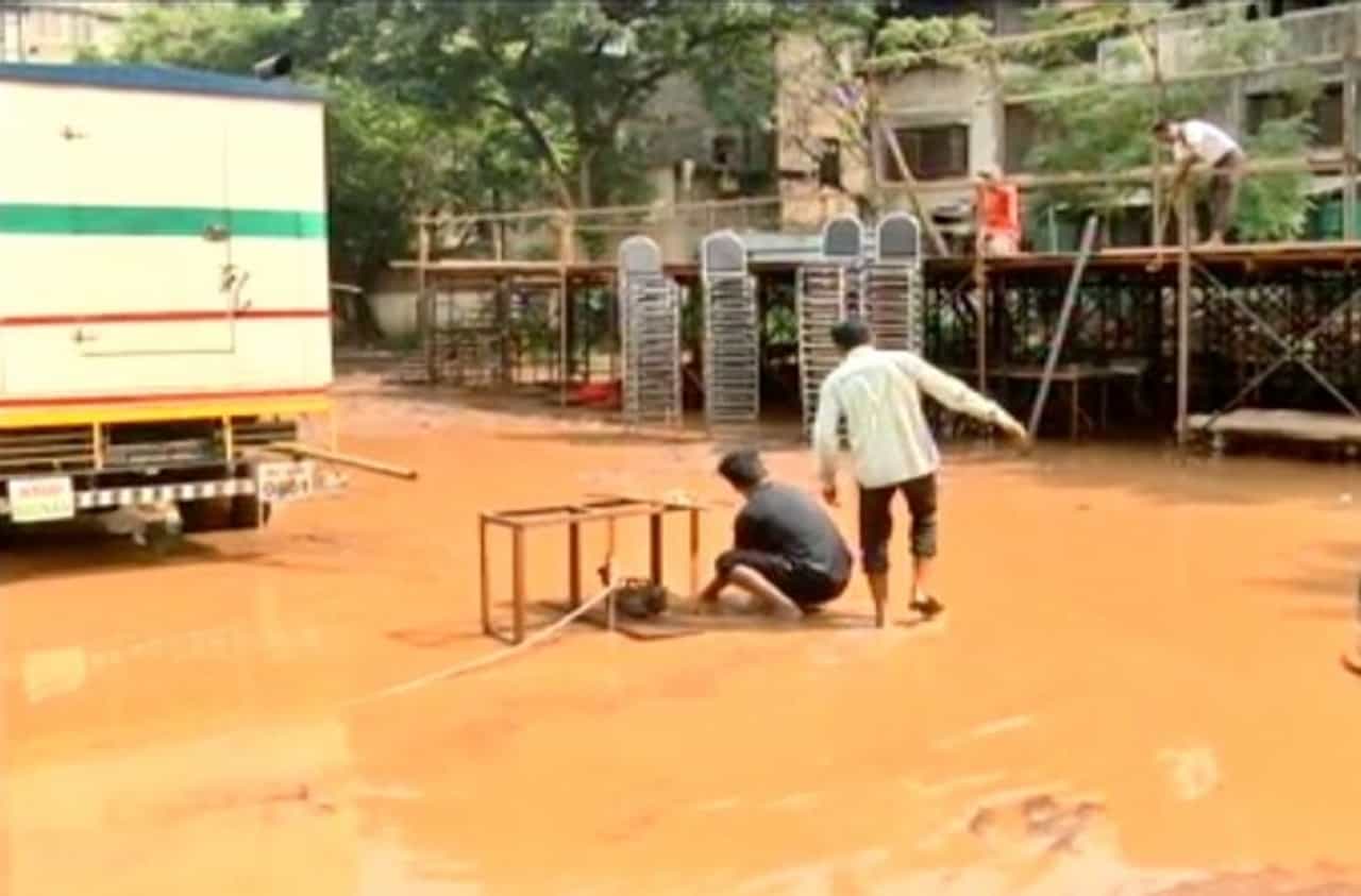 रात्रभर झालेल्या पावसामुळे मैदानात मोठ्या प्रमाणावर पाणी साचलं होतं. सकाळी मनसे कार्यकर्त्यांनी हे पाणी मोटार लावून बाहेर काढलं. पण नंतरही पाऊस झाल्याने पुन्हा पाणी साचलं. यामुळे मैदानात मोठ्या प्रमाणात चिखलही झाला होता.