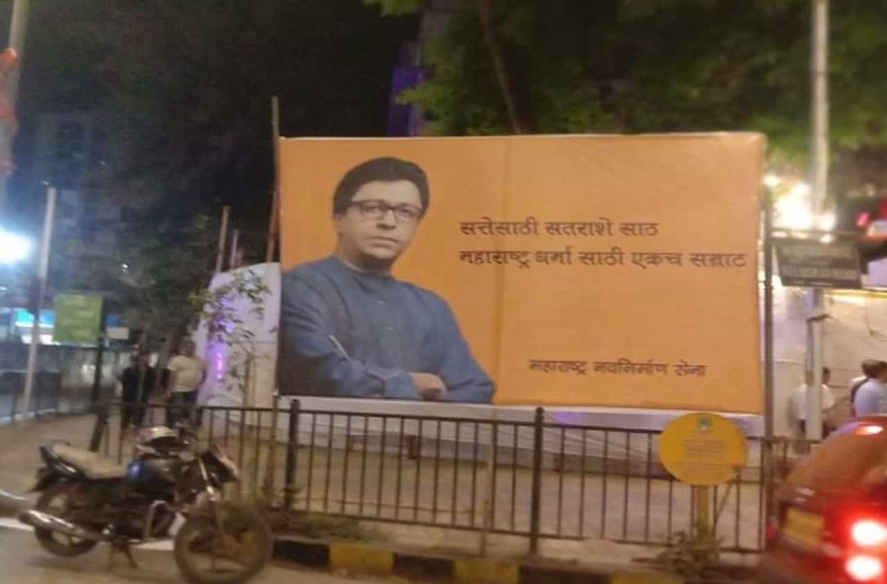 ‘सत्तेसाठी सतराशे साठ, महाराष्ट्र धर्मासाठी एकच सम्राट’ असं या पोस्टरवर लिहिलं आहे. सेनाभवनासमोर गुरुवारी रात्री हे भव्य पोस्टर लावण्यात आलं. त्यानंतर, मराठी आणि हिंदुत्व यांची सांगड घालणाऱ्या ‘महाराष्ट्र धर्मा’वर मनसे पुढची वाटचाल करणार का? याबाबत चर्चा सुरु झाली आहे.
