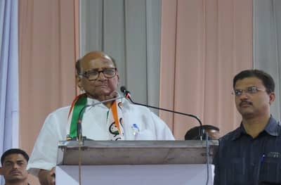 नाशिक : राष्ट्रवादी काँग्रेसचे अध्यक्ष शरद पवार यांच्या नाशिक येथील सभास्थळी काँग्रेसचे ज्येष्ठ नेते राधाकृष्ण विखे पाटील पोस्टरवरुन गायब असल्याचे पाहायला मिळाले. दुसरीकडे मनसे अध्यक्ष राज ठाकरे यांचे पोस्टर मात्र सभेच्या प्रवेशद्वारावर लावलेले दिसले. शरद पवार नाशिक लोकसभा मतदारसंघाचे आघाडीचे उमेदवार समीर भुजबळ यांच्या प्रचारासाठी नाशिकमधील सैय्यद पिंपरी गावात आले होते.