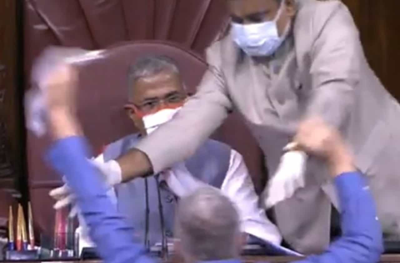 तृणमूल खासदाराने नियम पुस्तक फाडले, वेलमध्ये काँग्रेस-आपचा गोंधळ, राज्यसभेत कृषी विधेयकं मंजूर