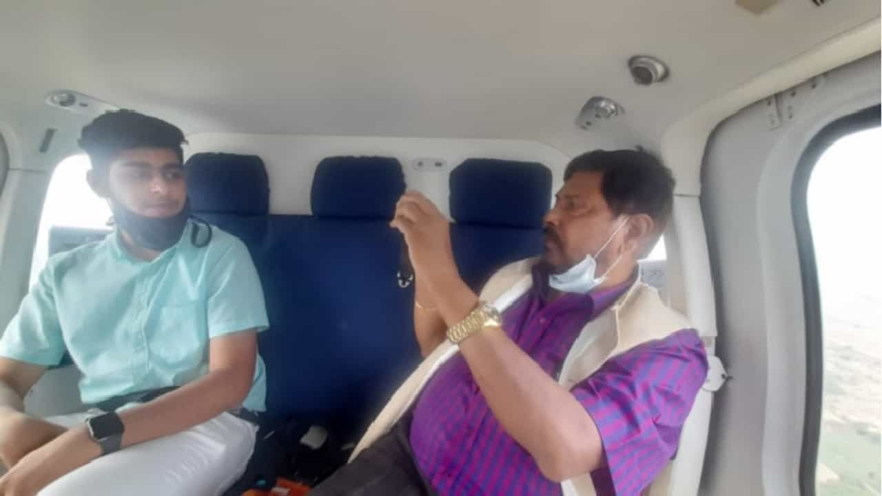 इंदापूर ते मुंबई हेलिकॉप्टर प्रवासादरम्यान जीत आठवले यांना फोटोसेशनचा मोह आवरला नाही (Ramdas Athawale Son Jeet Athawale )