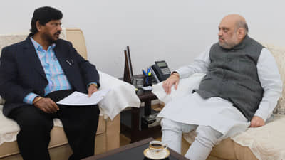 नवी दिल्ली: केंद्रीय सामाजिक न्याय राज्यमंत्री रामदास आठवले यांनी आज केंद्रीय गृहमंत्री अमित शहा यांची भेट घेतली. या भेटीत आठवले यांनी शहा यांच्याकडे महात्मा फुले आणि लोकशाहीर अण्णा भाऊ साठे यांना भारत रत्न पुरस्कार देण्यात यावा अशी मागणी केली आहे. तसेच या दोन्ही नेत्यांमध्ये उत्तर प्रदेशात भाजप-रिपाइं युती करण्यावरही चर्चा करण्यात आली.