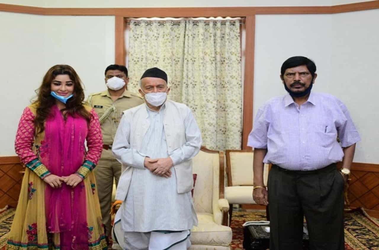 Union Minister of State for Social Justice and Empowerment Ramdas Athawale accompanied by film actress Payal Ghosh met Governor Bhagat Singh Koshyari at Raj Bhavan, Mumbai and presented a memorandum. pic.twitter.com/dTgInnGFIA