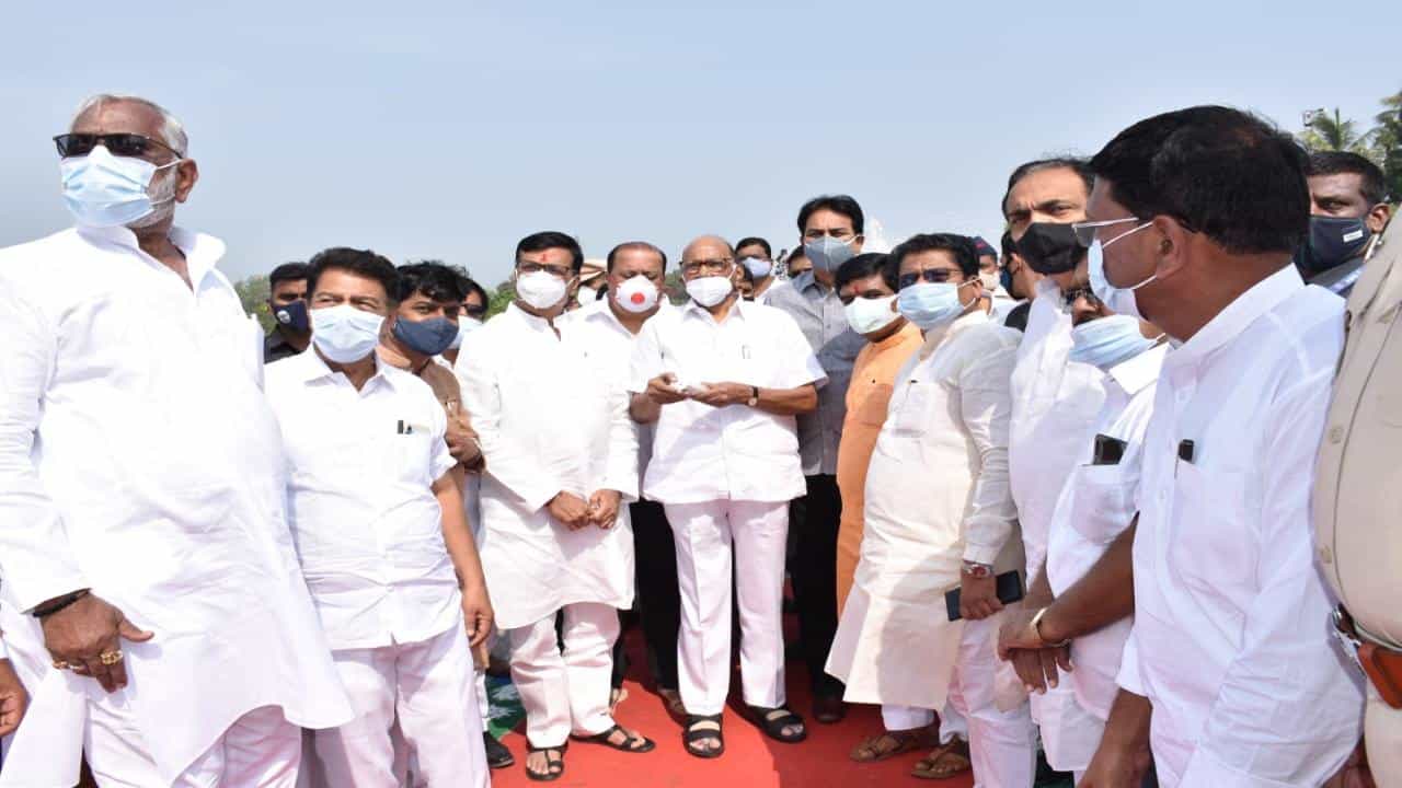 अहमदनगर : ‘दुष्काळ पाहण्यासाठी इंदिरा गांधी आणि पंडित नेहरु आले होते. पण आता पाणी आलं आहे, परिस्थितीत बदलली आहे. नगर जिल्ह्यात खूप जागृती असते. पाण्याच्या प्रश्नावरुन या जिल्ह्यात खूप वाद व्हायचे. इथे लग्नानंतर भाषणे करायची पद्धत होती आणि त्या भाषणात लग्न लागल्यानंतर पाण्यावरुन भाषणं व्हायची’, असा एक किस्सा राष्ट्रवादी काँग्रेसचे अध्यक्ष शरद पवार यांनी सांगितला. श्रीगोंदा येथील तत्त्वनिष्ठ नेतृत्व माजी आमदार शिवाजीराव नागवडे यांच्या पूर्णाकृती पुतळ्याचे अनावरण शरद पवार, महसूलमंत्री बाळासाहेब थोरात, जलसंपदा मंत्री जयंत पाटील, ग्रामविकास मंत्री हसन मुश्रीफ यांच्या उपस्थितीत करण्यात आलं. शरद पवार यांनी यावेळी माजी आमदार शिवाजीराव नागवडे यांच्या आठवणी जागवल्या. (Sharad Pawar shared his memories of the water crisis in Nagar district)