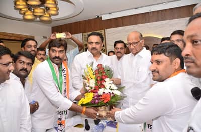 अहमदनगर : राष्ट्रवादी काँग्रेसचे अध्यक्ष शरद पवार पक्षाचे उमेदवार संग्राम जगताप यांच्या प्रचारासाठी नगरमध्ये दाखल झाले आहेत. नगरमध्ये जाताच त्यांनी भाजपला पहिला धक्का दिला. भाजपचे आमदार शिवाजी कर्डिले यांचे पुतणे रोहिदास आणि देवीदास कर्डिले यांनी राष्ट्रवादीत प्रचार केलाय. भाजपचे उमेदवार सुजय विखेंसाठी हा धक्का मानला जात आहे.