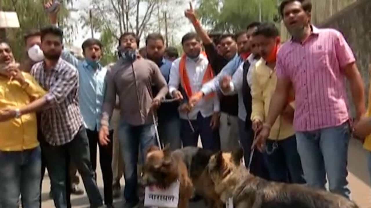 (Shivsena workers set free stray dogs in bjp office nashik Maharashtra)