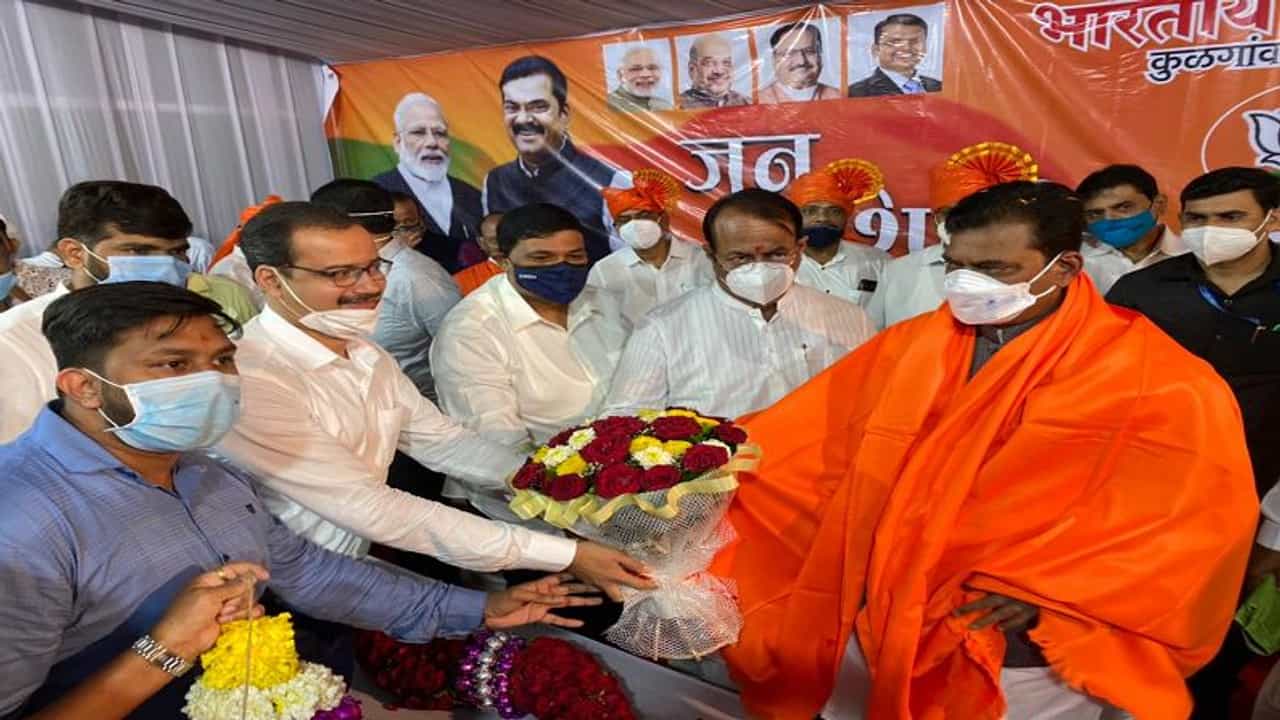 केंद्रीय राज्यमंत्री कपिल पाटील यांची जन आशीर्वाद यात्रा बुधवारी बदलापूरमध्ये आली. यावेळी शिवसेनेचे शहरप्रमुख वामन म्हात्रे यांनी भाजपच्या मंचावर जाऊन त्यांचं स्वागत केलं. यामुळे अनेकांच्या भुवया उंचावल्या.
