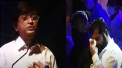 ठाणे : प्रख्यात दिग्दर्शक विजू माने (Viju Mane) यांनी पांडू सारख्या नर्मविनोदी चित्रपटातून प्रेक्षकांना खळखळून हसवलं आहे, तसं ‘बायोस्कोप’, ‘खेळ मांडला’, ‘गोजिरी’ यासारख्या चित्रपटांतून संवेदनशील विषय हाताळत रसिकांच्या डोळ्यात टचकन पाणीही आणलं आहे. मंगळवारी विजू मानेंनी राज्याचे नगरविकास मंत्री आणि ठाण्याचे पालकमंत्री एकनाथ शिंदे (Eknath Shinde Birthday) यांच्या काळजाला हात घातला. निमित्त होतं एकनाथ शिंदे यांच्या वाढदिवसाचं. “शिंदे साहेब तुमच्या सारखे कोणी नाही” असं म्हणज विजू माने यांनी स्वरचित कविता सादर केली. ही कविता म्हणजे एकनाथ शिंदे यांचा जीवन प्रवासच होता. माने कविता वाचत असतानाच एकनाथ शिंदेंच्या मनात आठवणींचा पट जागा झाला. जुन्या स्मृतींमध्ये हरवून जात शिंदेंच्या डोळ्यांसमोरुन आठवणी फेर धरु लागल्या आणि एकनाथ शिंदे भावूक झाले. त्यांच्या डोळ्यात कधी पाणी आलं, हे त्यांचं त्यांनाही कळलं नाही. कविता ऐकतानाच एकनाथ शिंदेंना अश्रू अनावर झाल्याचे क्षण कॅमेरात कैद झाले आहेत.