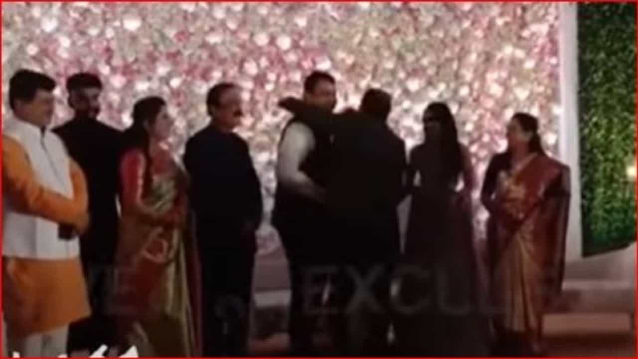 त्यावेळी दुसरीकडे असलेल्या संजय राऊत यांनी फडणवीसांना पाहिलं आणि ते फडणवीसांकडे आले. दोघेही समोरासमोर आल्यानंतर राऊत यांनी फडणवीसांची गळाभेट घेतली. यावेळी दोन्ही नेत्यांच्या चेहऱ्यावर एक हास्य होतं. त्यानंतर नव्या जोडप्यासह नार्वेकर आणि राऊत कुटुंबियांसोबत फडणवीसांनी फोटो काढले. त्यानंतर दरेकर यांनी पुढे होत नव्या जोडप्याला पुष्पगुच्छ देत शुभेच्छा दिल्या. तेव्हा राऊतांनीही पुढे होत दरेकरांच्या हातात हात दिला.