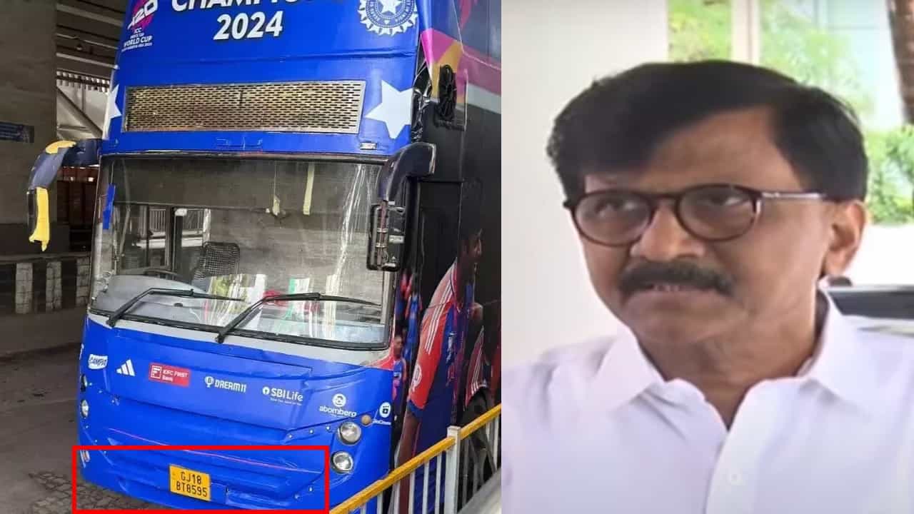 Sanjay Raut On Gujarat Open Deck Bus : टी 20 विश्वचषकातील विजेतेपद मिळवल्यानंतर टीम इंडिया गुरुवारी सकाळी भारतात दाखल झाली. यानंतर भारतीय संघाचे मुंबईत जोरदार स्वागत करण्यात आले. मुंबईतील नरीमन पाईंटपासून वानखेडे स्टेडियमपर्यंत त्यांचे विजयी यात्रा काढण्यात आली. यावेळी टीम इंडियाच्या खेळाडूंसाठी एक ओपन बस तयार करण्यात आली होती. ही बस गुजरातला बनवल्याचे त्याच्या नंबर प्लेटवरुन समोर आले आहे. आता शिवसेना नेते संजय राऊत यांनी यावर जोरदार निशाणा साधला.