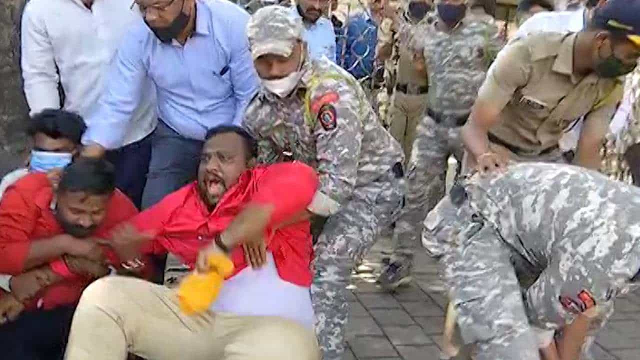 ST Workers Strike Attempt of Janshakti activists to throw ink on Anil Parab’s house