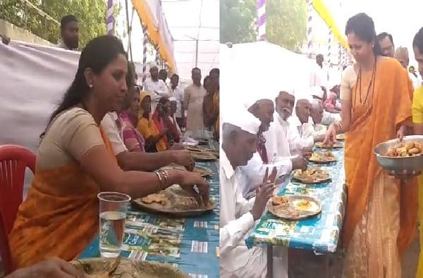 सुप्रिया सुळेंनी वयोवृद्धांना जेवण वाढलंही अन् पंगतीत जेवल्याही!