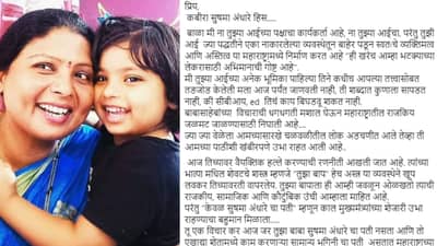 मुंबई: उद्धव ठाकरे गटाच्या शिवसेनेच्या उपनेत्या सुषमा अंधारे यांचे विभक्त पती वैजनाथ वाघमारे यांनी शिंदे गटात प्रवेश केला. सुषमा अंधारे यांना त्रास देण्यासाठीच वाघमारे यांना शिंदे गटात प्रवेश देण्यात आल्याचं सांगितलं जात आहे. वाघमारे यांनीही आपण सुषमा अंधारे यांची पोलखोल करणार असल्याचं जाहीर केलं आहे. त्यामुळे सुषमा अंधारे यांनी आपल्या लाडक्या लेकीला कबीराला उद्देशून एक पत्र लिहिलं. त्यात आपल्या राजकीय निर्णयावर भाष्य करतानाच राजकारणात उभं राहताना होणाऱ्या हल्ल्यांचाही उल्लेख केला. सुषमा अंधारे यांचं हे भावूक पत्रं व्हायरल झालं. त्यानंतर अंधारे यांच्या भावानेही भाचीला एक भावूक पत्र लिहून सुषमा अंधारे यांच्या जिद्दीचं वर्णन केलं आहे.