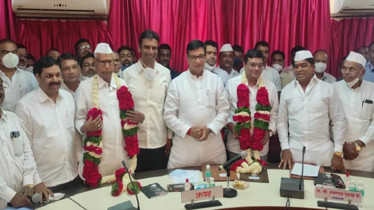 (Uday Shelke elected as the new chairman of Ahmednagar District Co-operative Bank and Madhavrao Kanwade as the vice chairman)