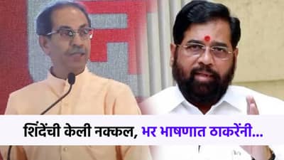 तसेच पुढे बोलताना त्यांनी उपमुख्यमंत्री यांची नक्कल केली. “खड्ड्यांवर मात करून पुढे जाण्याची हिंमत पाहिजे. म्हणूनच मी एक गोष्ट सर्वांना सांगतो. आणि…म्हणून… (एकनाथ शिंदे यांच्या भाषण शैलीत) असं नाही. कारण अजूनही मी खाजवायला दाढी वाढवलेली नाही. मला असे दुसऱ्याचे वडील चोरायची गरजही नाही. जे आहेत एसंशी त्यांना सोडून द्या,” अशी उपहासात्मक टीका ठाकरेंनी शिंदेंवर त्यांचे नाव न घेता केली.