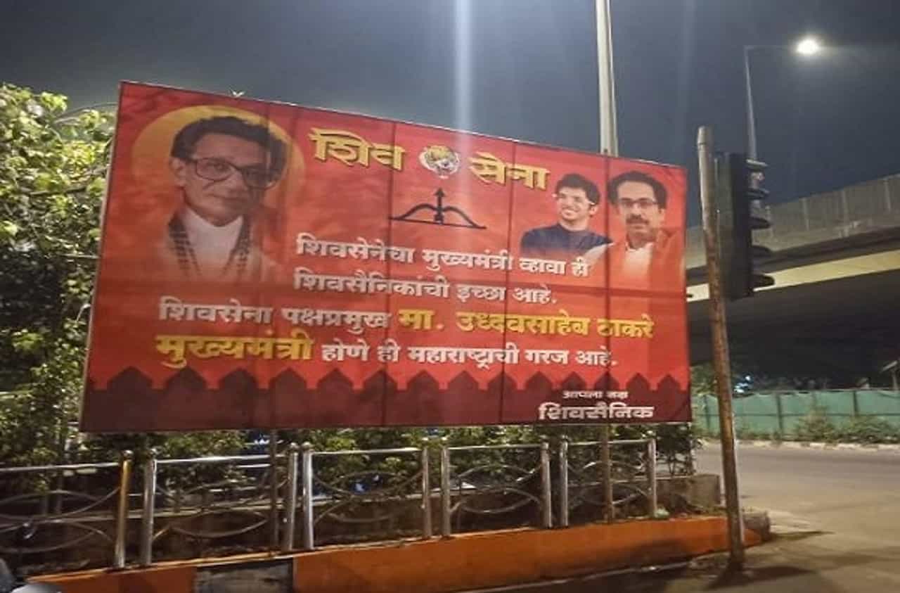 शिवसेना पक्षप्रमुख मा. उद्धवसाहेब ठाकरे मुख्यमंत्री होणे ही महाराष्ट्राची गरज आहे, असे पोस्टर्स 'मातोश्री'जवळ लागले आहेत