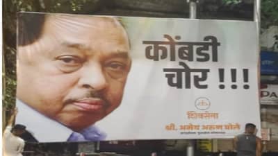 मुंबई : केंद्रीय मंत्री नारायण राणे (Narayan Rane) यांनी मुख्यमंत्री उद्धव ठाकरे (CM Uddhav Thackeray) यांच्याबद्दल आक्षेपार्ह वक्तव्य केल्यामुळे शिवसैनिक चांगलेच संतप्त झाले आहेत. मुंबईतील दादर टीटी भागात शिवसेनेचे स्थानिक नगरसेवक अमेय घोले यांनी नारायण राणे यांचा मोठा फोटो बॅनरवर लावला आहे. त्यावर “कोंबडी चोर !!!” असे नारायण राणेंना झोंबणारे शब्द लिहिले आहेत. त्यामुळे मुंबईतील राजकीय वातावरण चांगलेच तापले असून याचे आणखी तीव्र पडसाद उमटण्याचीही शक्यता व्यक्त केली जात आहे.
