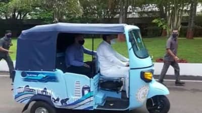 Ajit Pawar drove an electric rickshaw of Piaggio Company